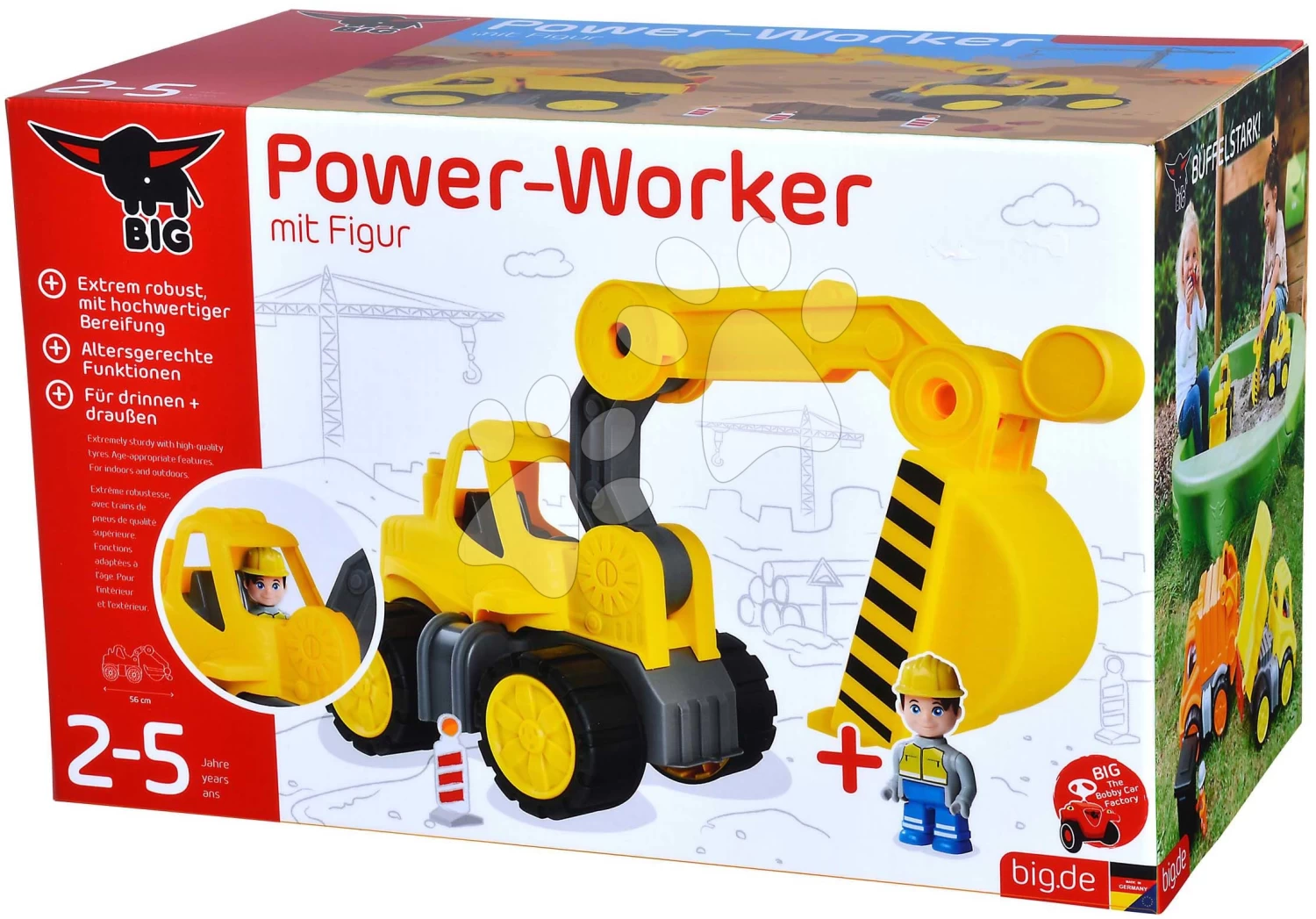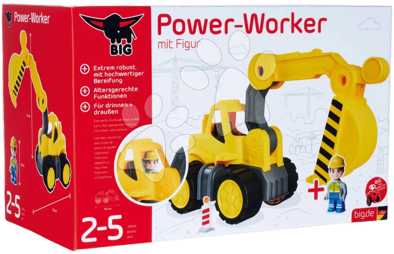Bagger Power Worker Digger + Figurine BIG Arbeitsmaschine 67 Cm Mit Gummirädern Ab 2 Jahren B54835