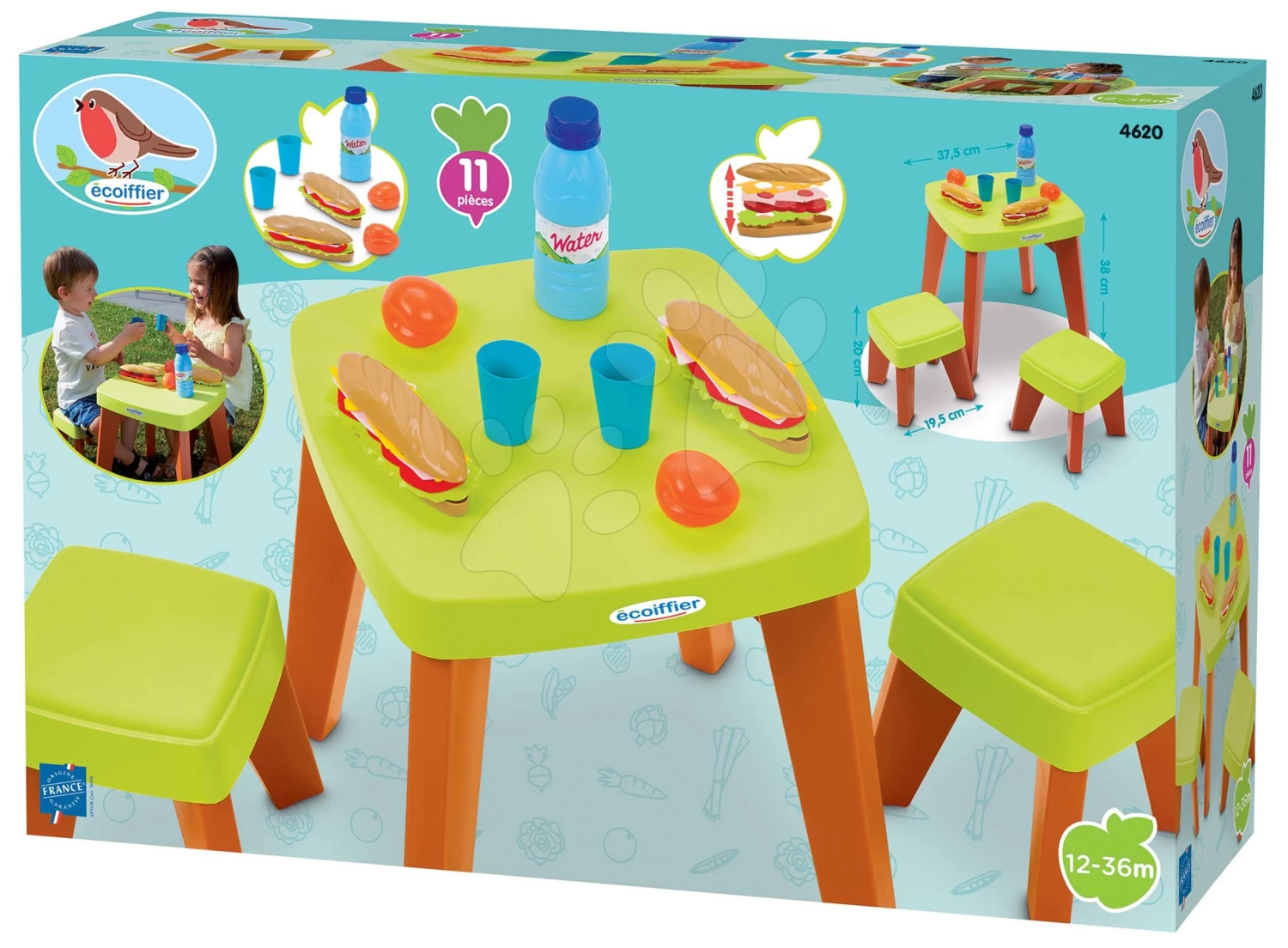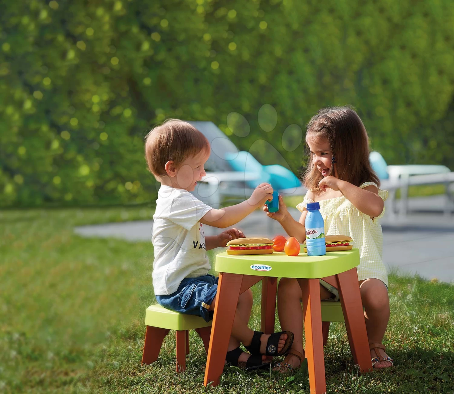 ECOIFFIER Tisch Mit Zwei Stühlen Garden&Seasons Écoiffier Mit Lebensmittel 10 Zubehörteile Höhe 38 Cm Ab 12 Monaten