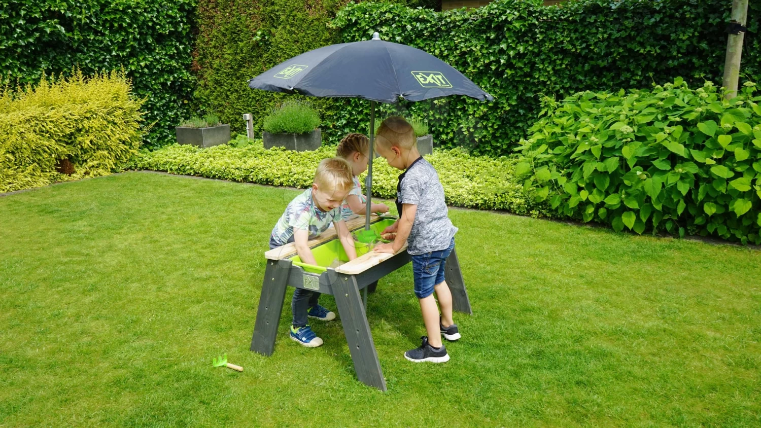 EXIT TOYS EXIT Aksent Sand- Und Wassertisch Mit Sonnenschirm Und Gartenwerkzeugen