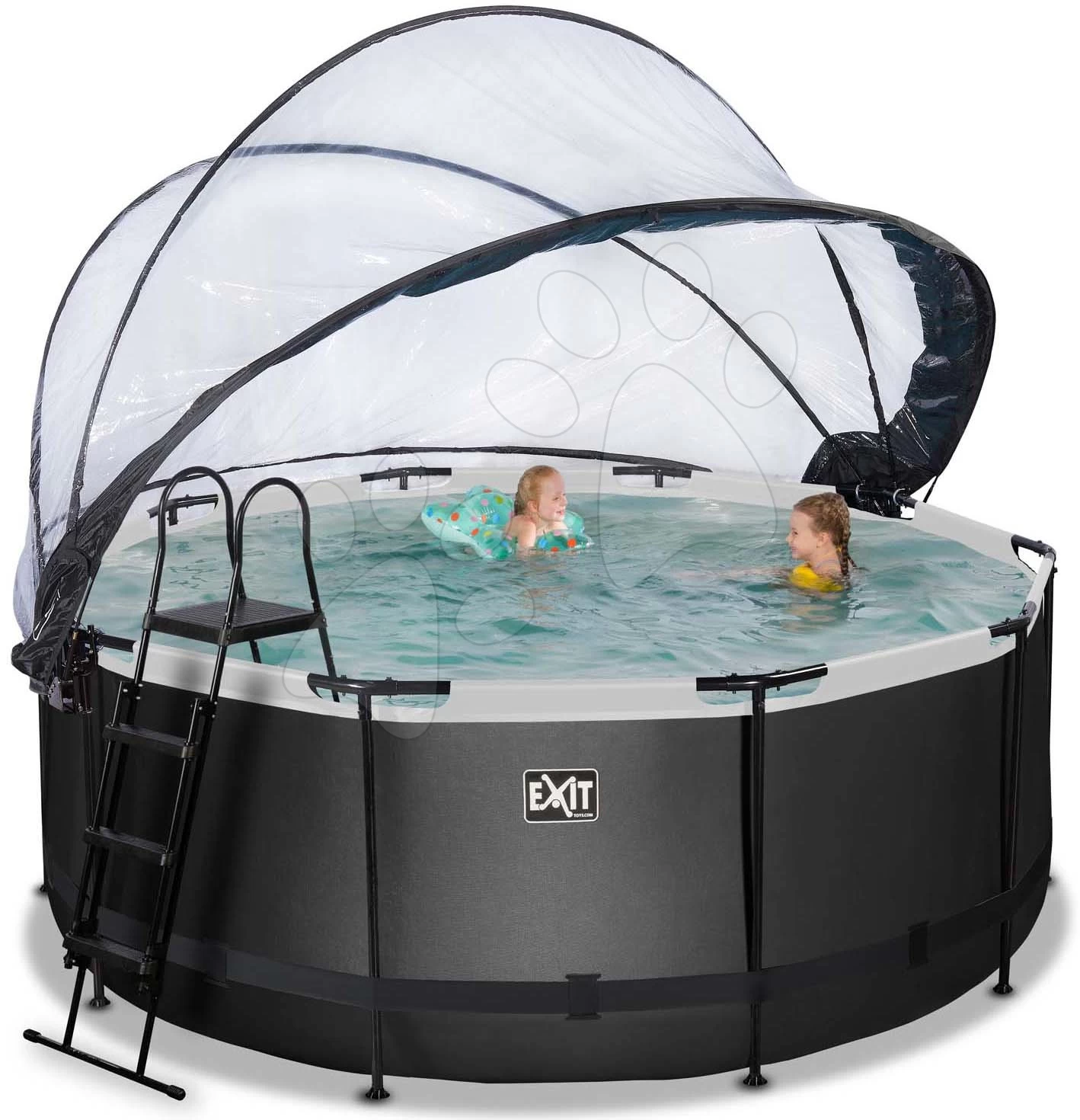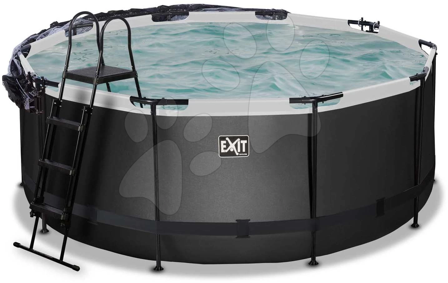 EXIT TOYS EXIT Black Leather Pool ø360x122cm Mit Sandfilterpumpe Und Abdeckung Und Wärmepumpe – Schwarz