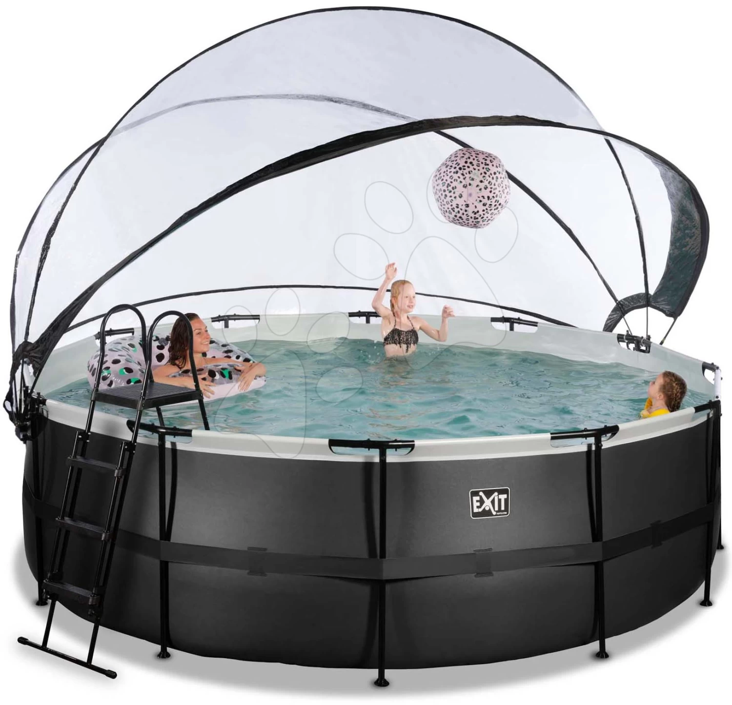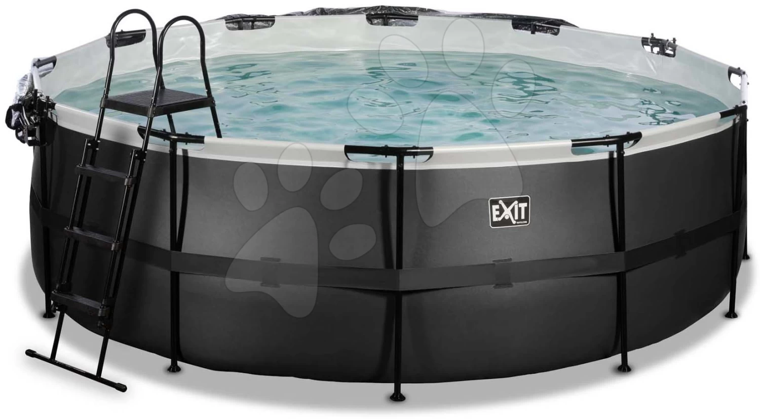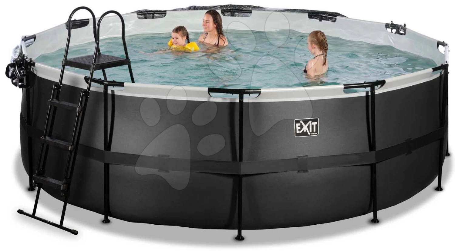 EXIT TOYS EXIT Black Leather Pool ø427x122cm Mit Sandfilterpumpe Und Abdeckung Und Wärmepumpe – Schwarz