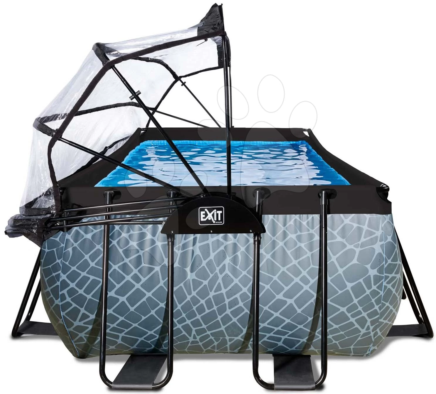EXIT TOYS EXIT Stone Pool 400x200x122cm Mit Sandfilterpumpe Und Abdeckung Und Wärmepumpe – Grau