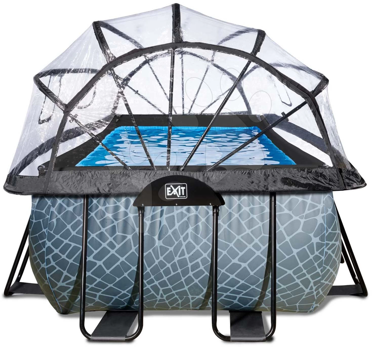 EXIT TOYS EXIT Stone Pool 400x200x122cm Mit Sandfilterpumpe Und Abdeckung Und Wärmepumpe – Grau