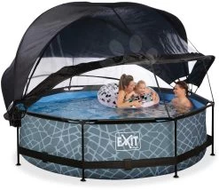 EXIT TOYS EXIT Stone Pool ø300x76cm Mit Filterpumpe Und Abdeckung Und Sonnensegel – Grau