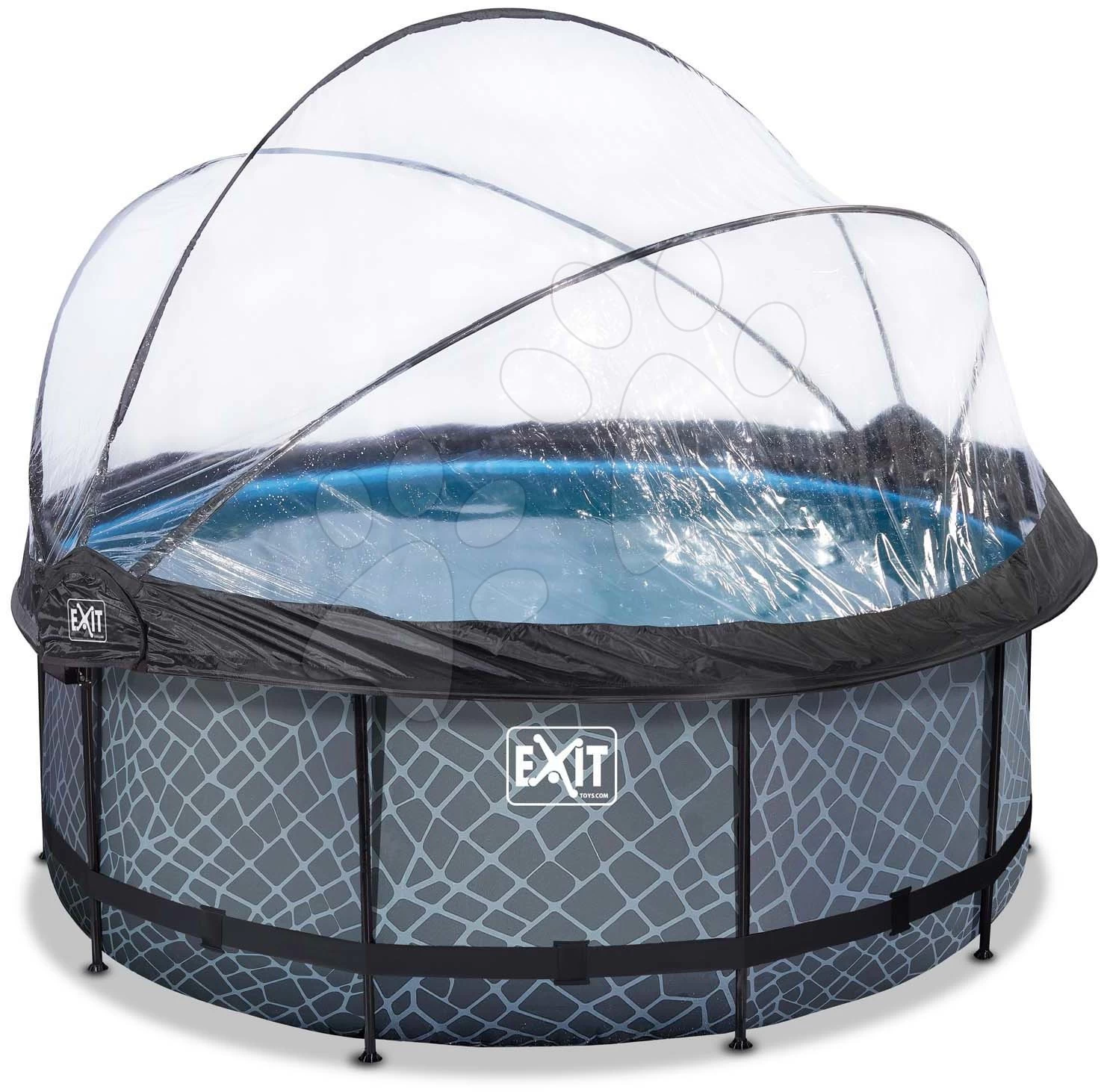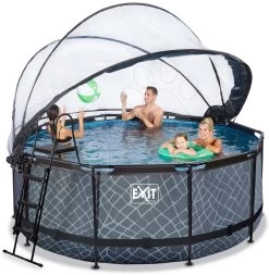 EXIT TOYS EXIT Stone Pool ø360x122cm Mit Sandfilterpumpe Und Abdeckung Und Wärmepumpe – Grau