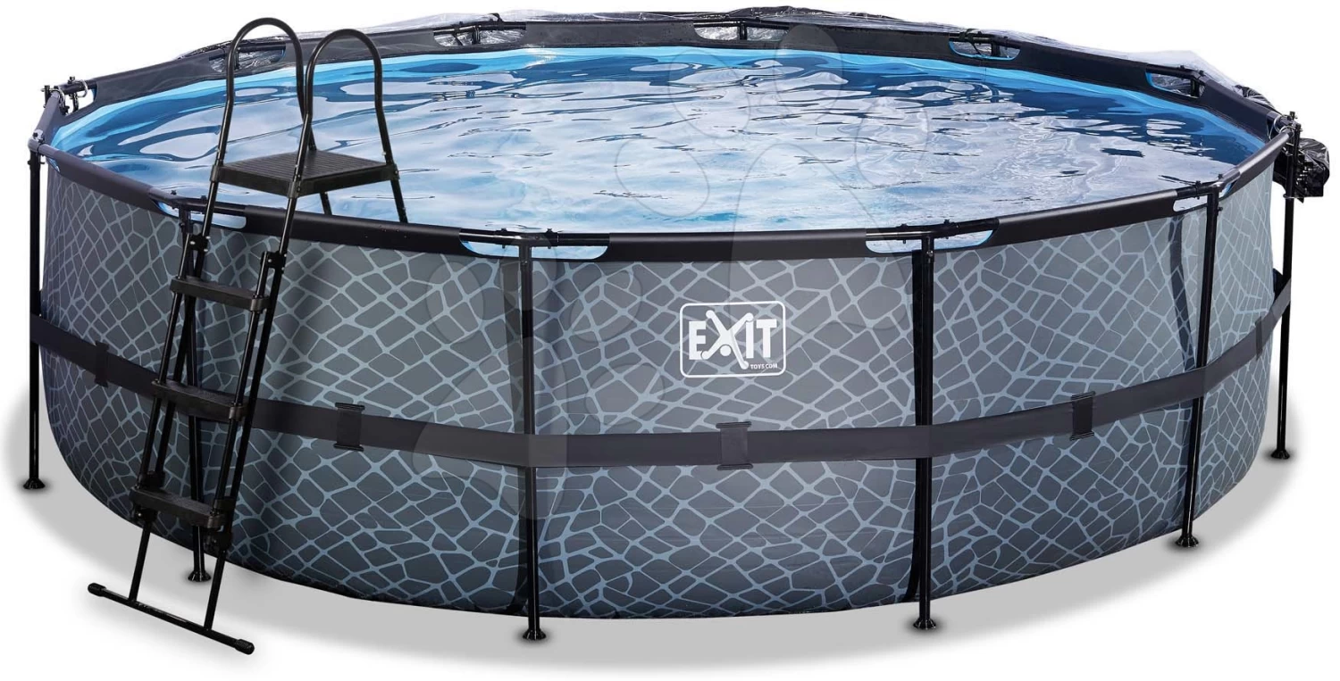 EXIT TOYS EXIT Stone Pool ø488x122cm Mit Sandfilterpumpe Und Abdeckung – Grau