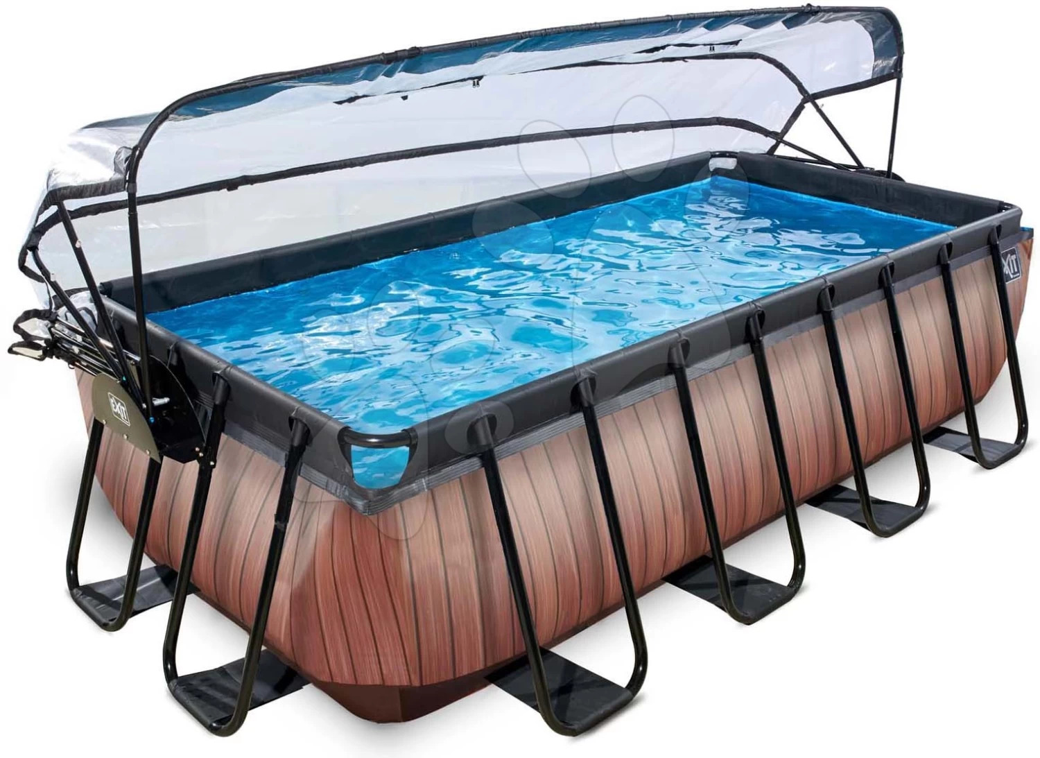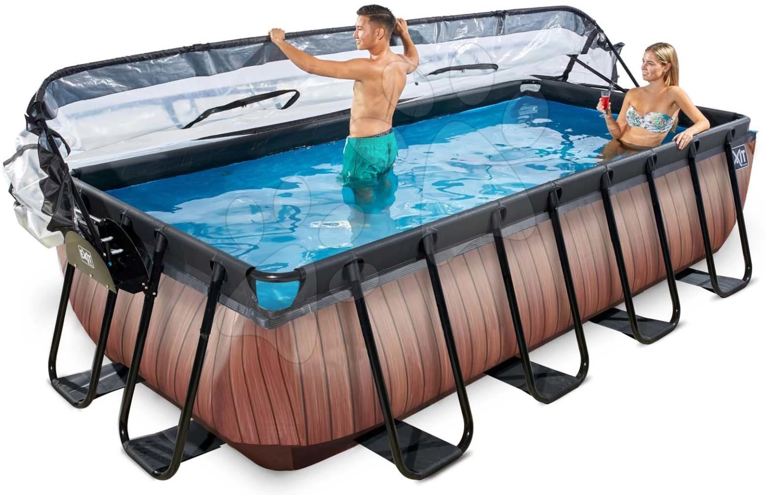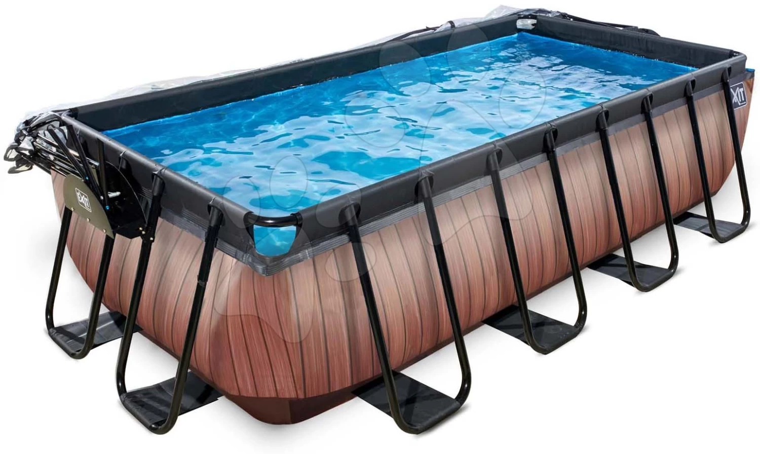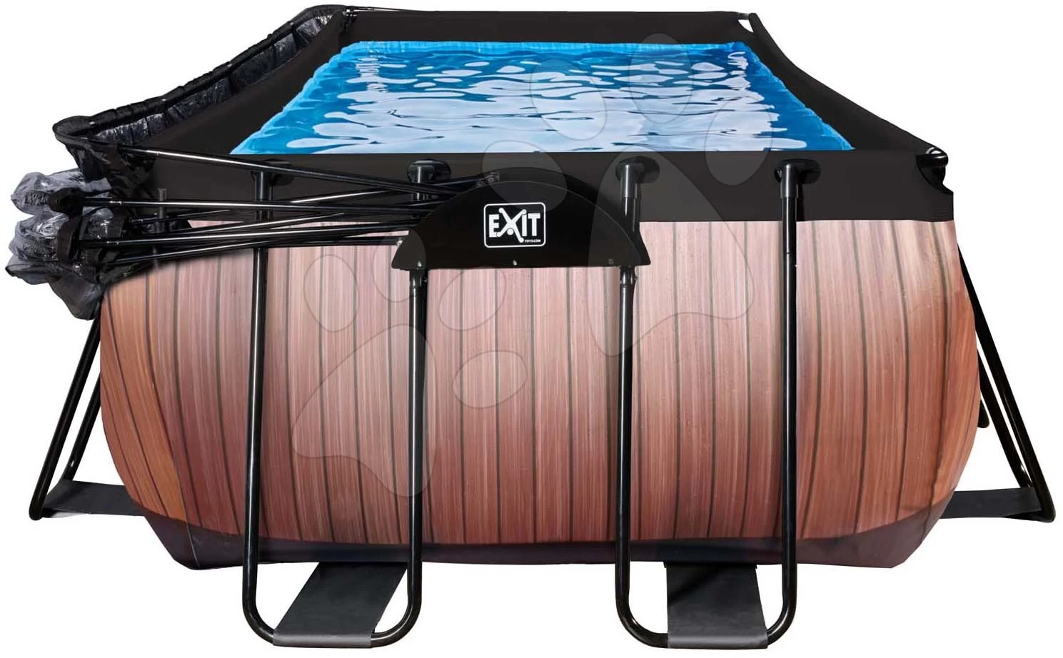 EXIT TOYS EXIT Wood Pool 400x200x100cm Mit Sandfilterpumpe Und Abdeckung Und Wärmepumpe – Braun