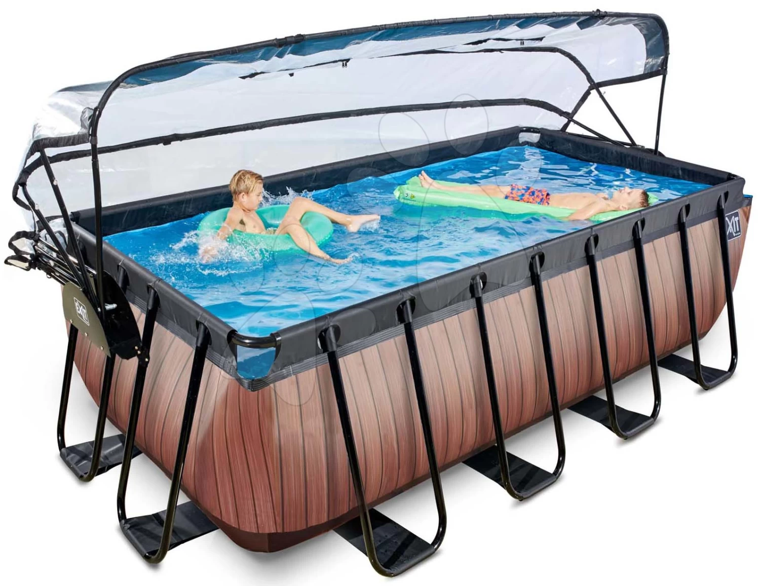 EXIT TOYS EXIT Wood Pool 400x200x122cm Mit Sandfilterpumpe Und Abdeckung – Braun