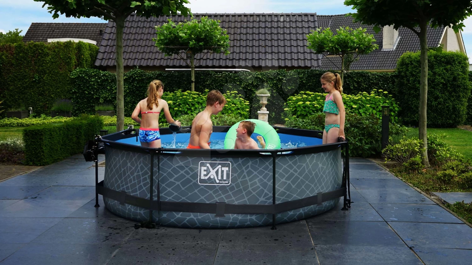 EXIT TOYS EXIT Wood Pool ø300x76cm Mit Filterpumpe – Braun