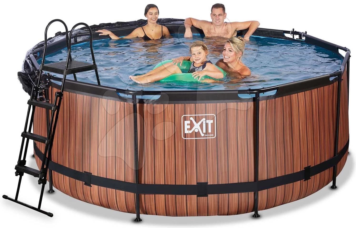 EXIT TOYS EXIT Wood Pool ø360x122cm Mit Sandfilterpumpe Und Abdeckung Und Wärmepumpe – Braun