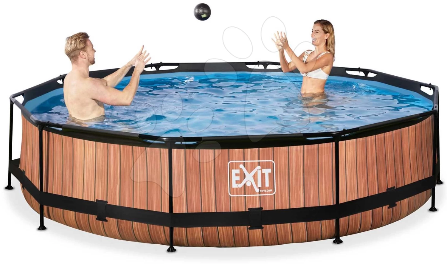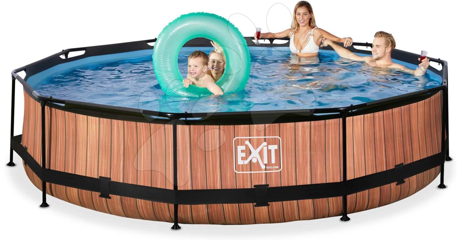 EXIT TOYS EXIT Wood Pool ø360x76cm Mit Filterpumpe – Braun