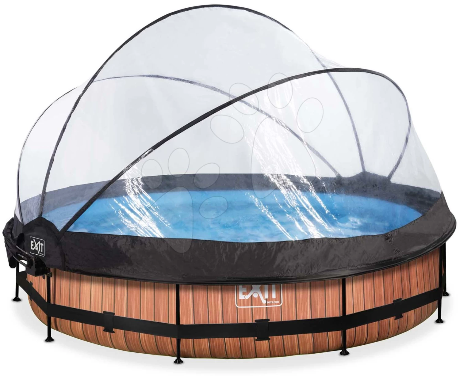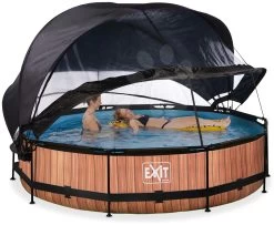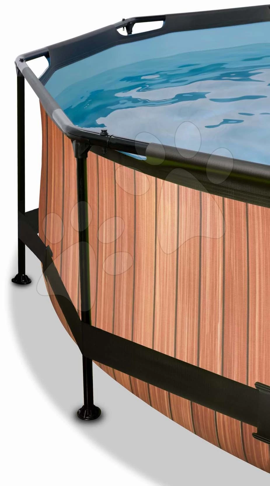 EXIT TOYS EXIT Wood Pool ø360x76cm Mit Filterpumpe Und Abdeckung Und Sonnensegel – Braun