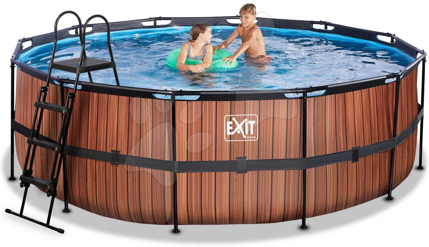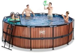 EXIT TOYS EXIT Wood Pool ø427x122cm Mit Filterpumpe – Braun