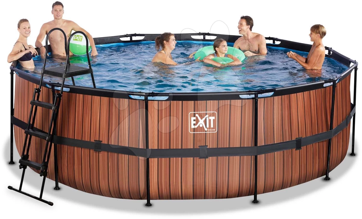 EXIT TOYS EXIT Wood Pool ø450x122cm Mit Filterpumpe – Braun