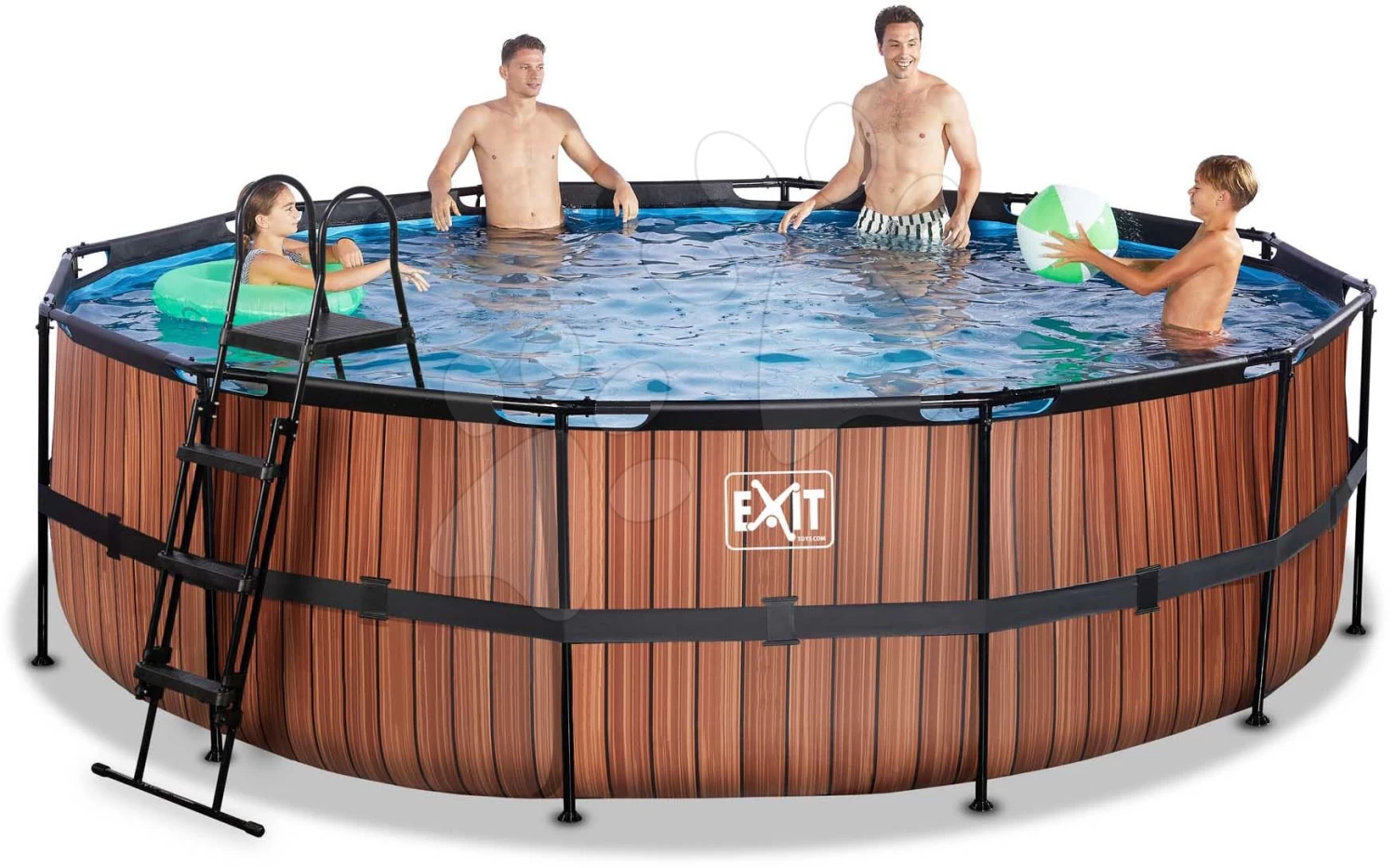 EXIT TOYS EXIT Wood Pool ø488x122cm Mit Filterpumpe – Braun