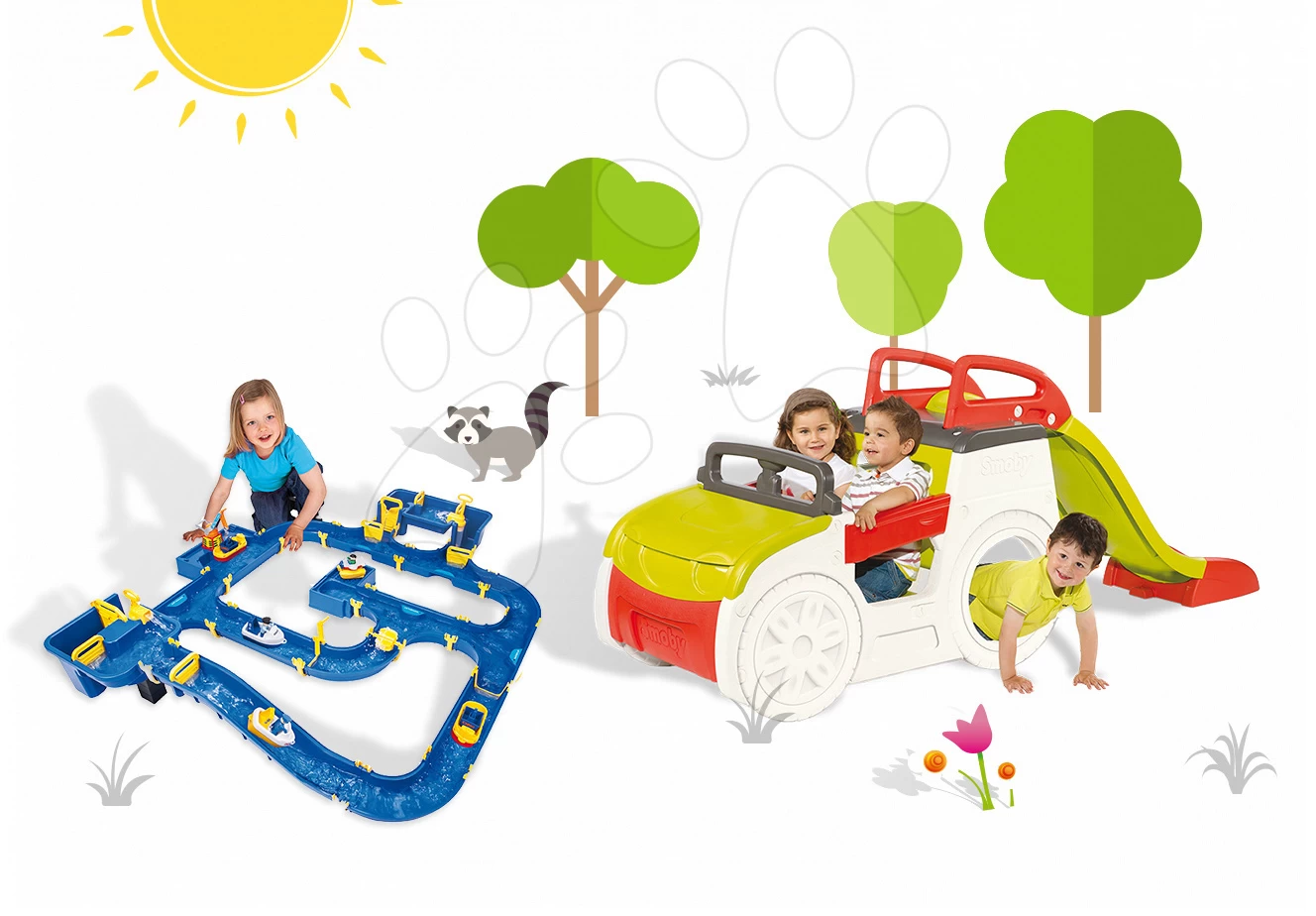 Kletterset Adventure Car Smoby Mit 150 Cm Langer Rutsche Und Wasserspiel Waterplay Niagara Ab 24 Monaten