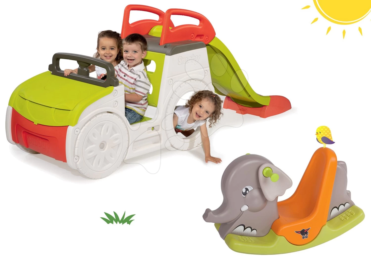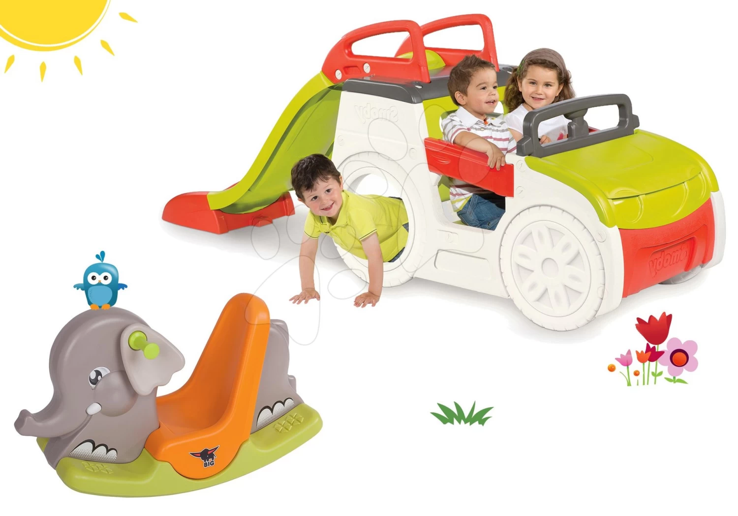 Kletterset Adventure Car Smoby Mit Rutsche Und Schaukel Elefant Mit Beweglichen Ohren Ab 24 Monaten