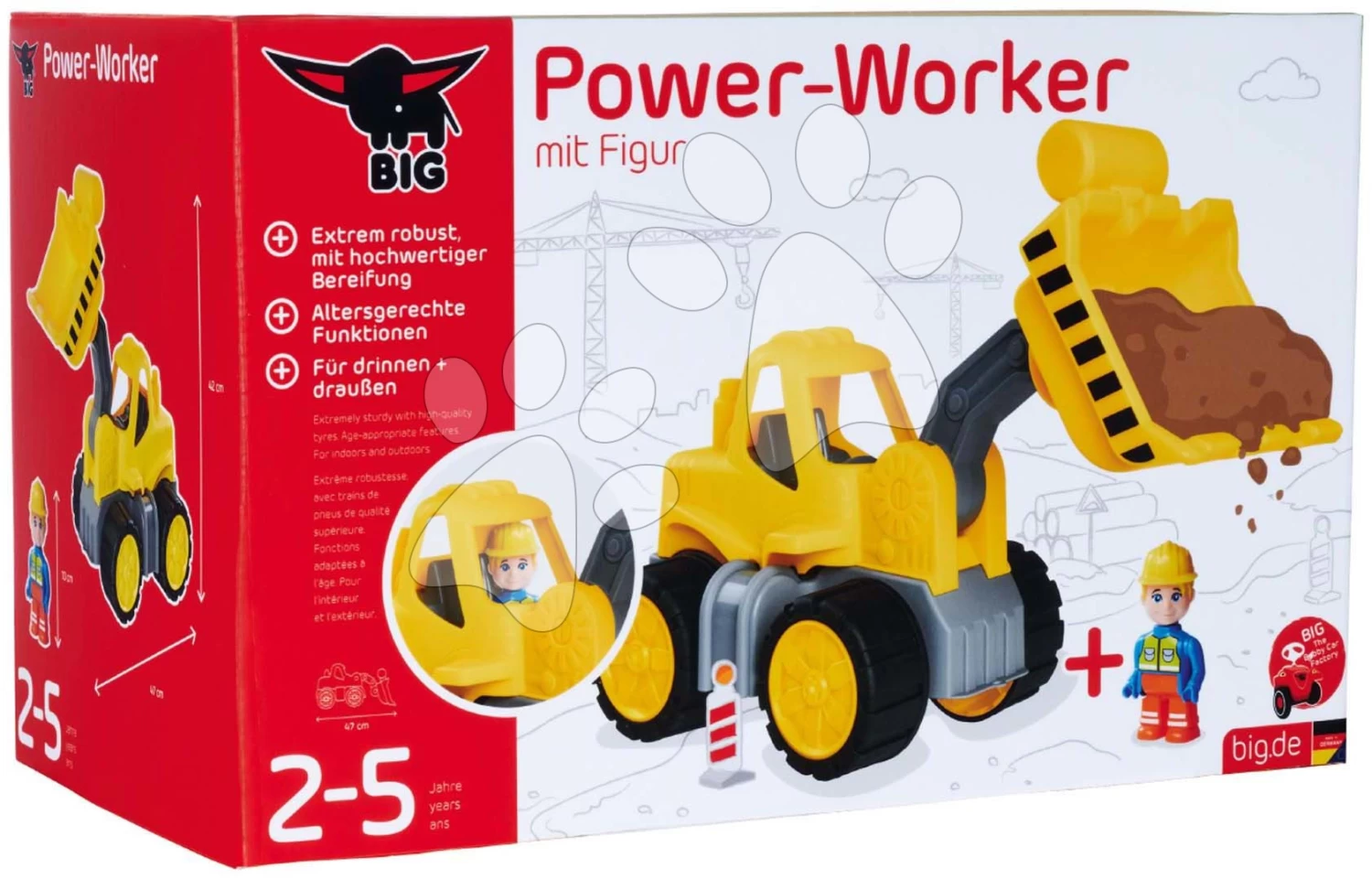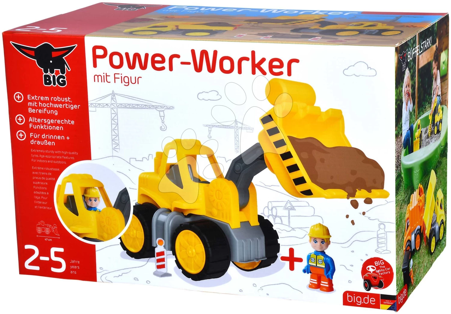 Lader Power Worker Wheel Loader + Figurine BIG Arbeitsmaschine 47 Cm – Gummiräder Ab 2 Jahren B54837
