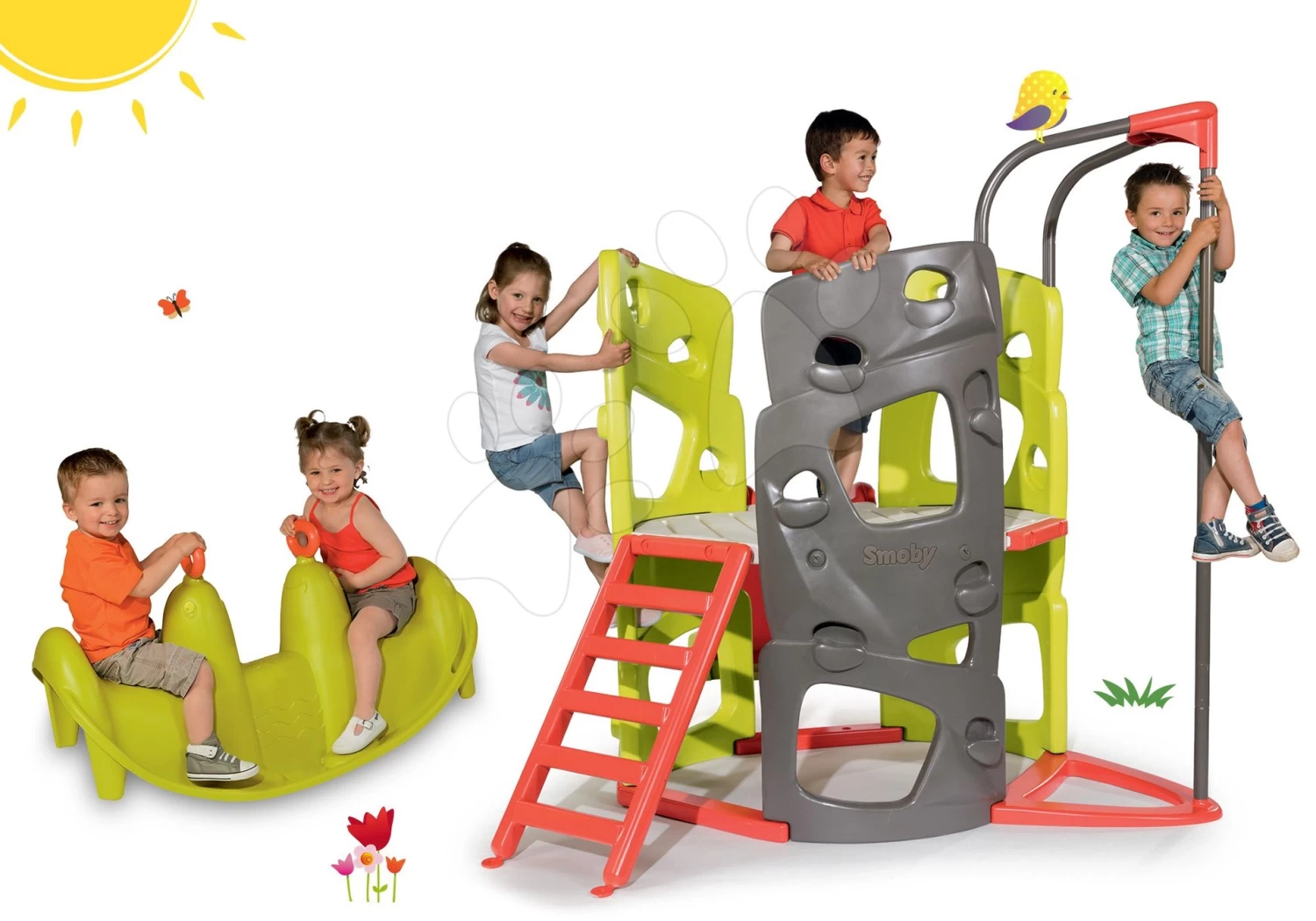 Multiaktivitäts-Kletterturm Climbing Tower Smoby Mit 3 Kletterwänden Mit Rutsche Und Geschenk Doppelschaukel Hund Ab 24 Monaten