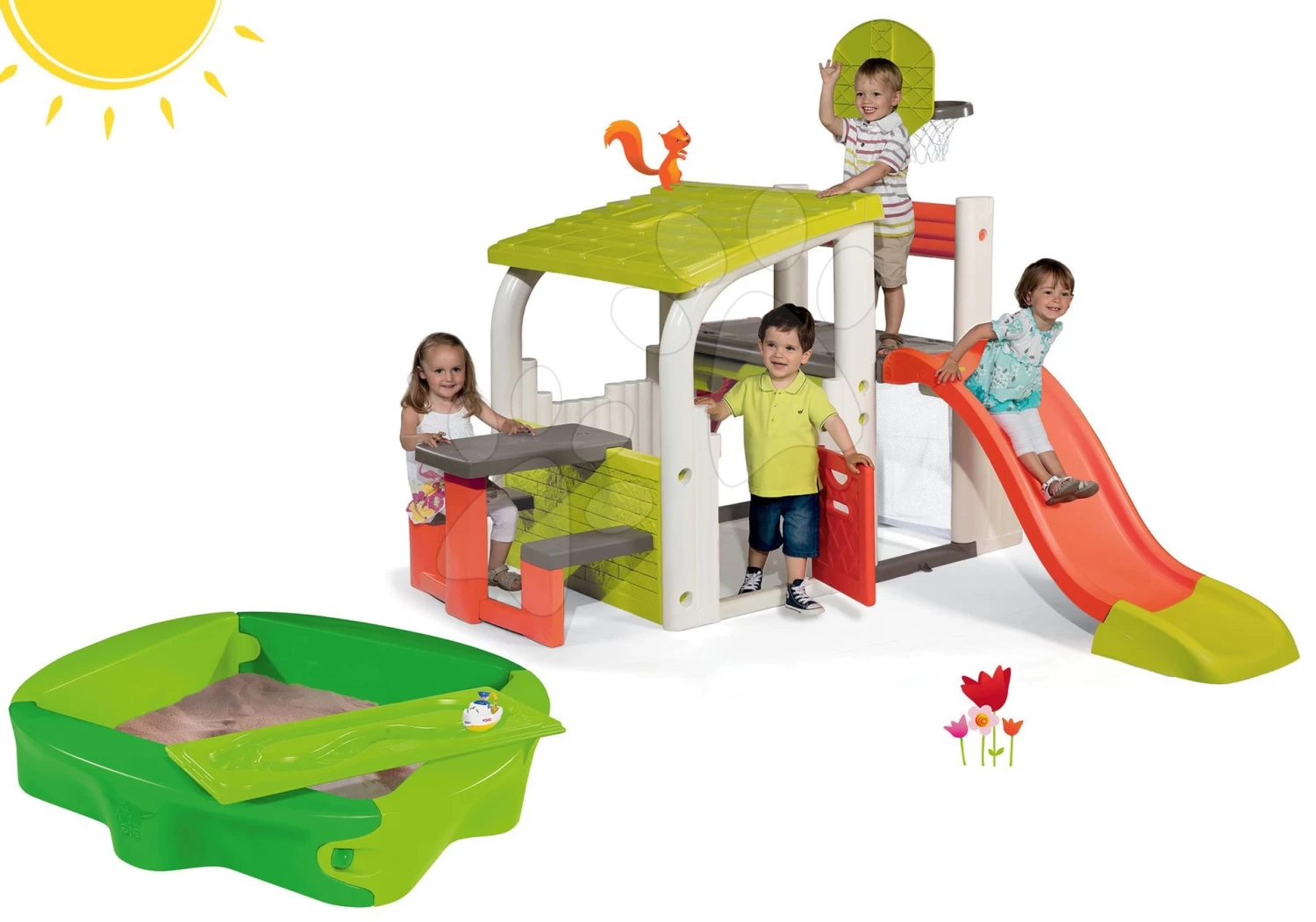 Spielcenter-Set Fun Center Smoby Mit Rutsche Und Sandkasten Sandy Mit Abdeckung Ab 24 Monaten