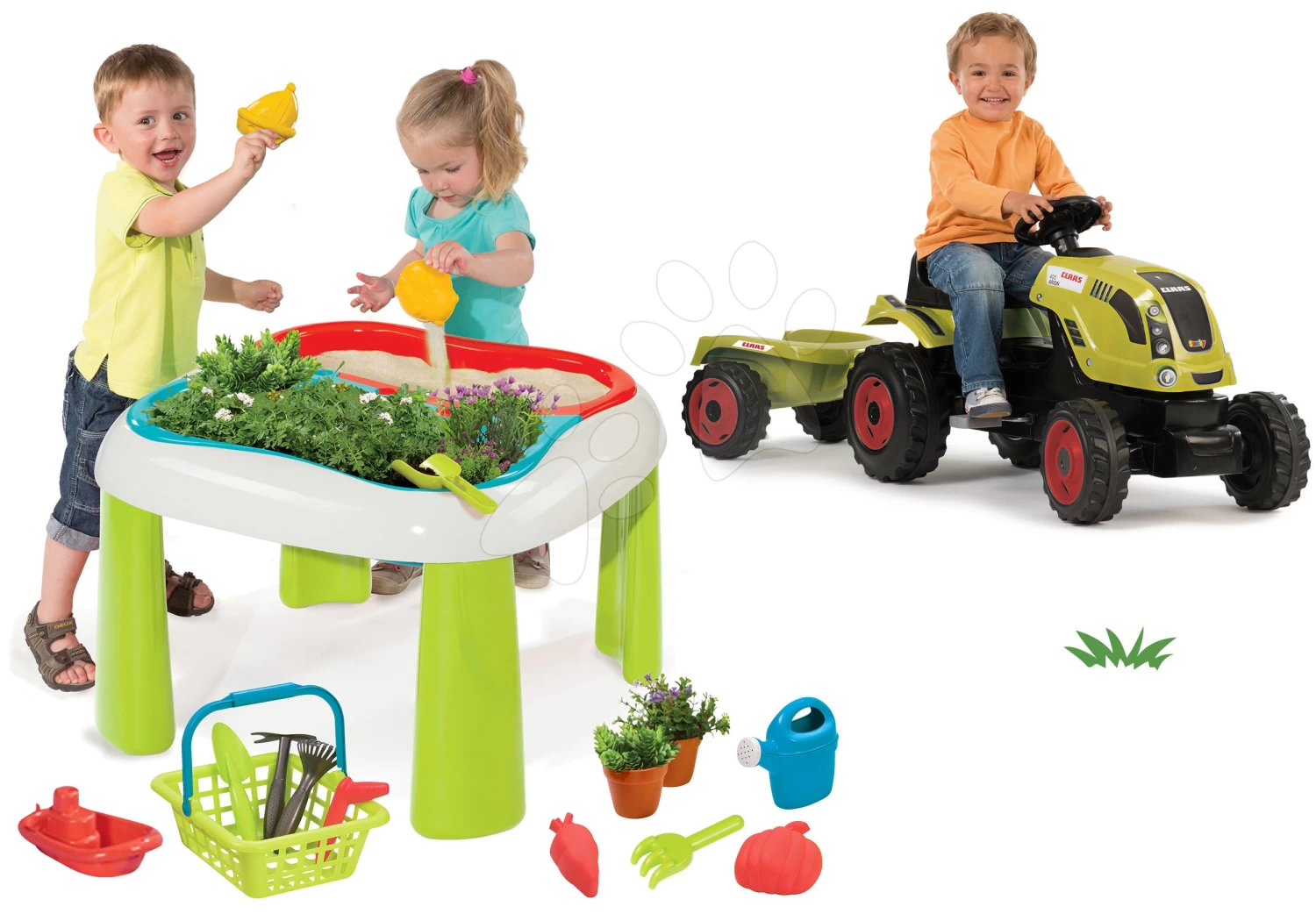 Tischset Gärtner De Jardinage 2in1 Smoby Zweiteilig Mit Garten Und Claas Farmer XL Traktor Mit Anhänger
