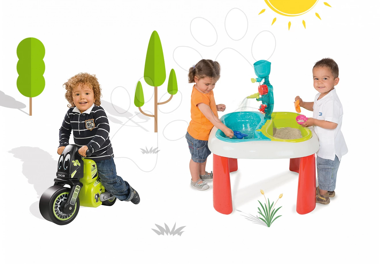 Tischset Water&Sand 2in1 Smoby Mit Mühle Und Rutscher Motorrad Racing Bike Ab 18 Monaten