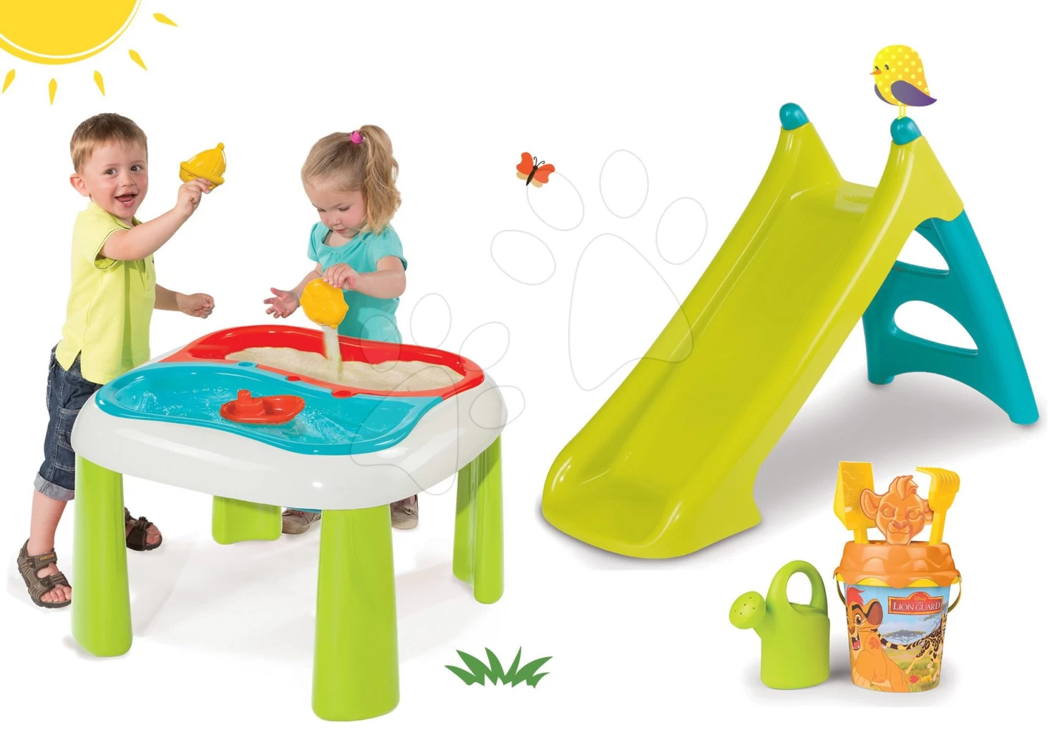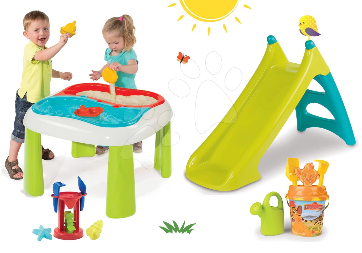 Tischset Water&Sand 2in1 Smoby Und Toboggan XS Rutsche 90 Cm Lang Mit Einem Eimerset Ab 18 Monaten